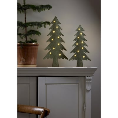 Skab hygge med denne store Fabbe dekoration fra Star Trading. Med varmt hvidt lys og indbygget timer er den perfekt til indendørs juleudsmykning. Fremstillet i grønt stof. Bruger 2 AA-batterier (medfølger ikke).