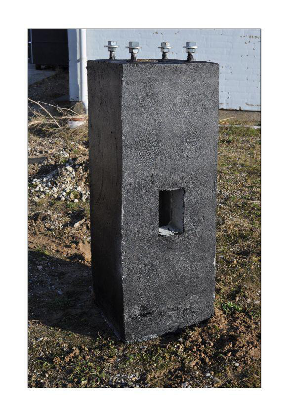 Færdig betonfundament med istøbte bolte, til master LPH = 7 & 8 m. Boltene er galvaniseret og fundamenterne er udført med kabelhuller på to modstående sider.