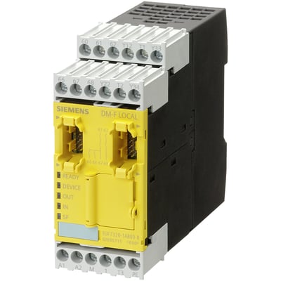 Fail-Safe digital modul DM-F lokalt, designet til sikker frakobling via hardware signal. Dette modul understøtter et bredt spændingsområde på 110...240 V AC/DC og er udstyret med 2 relæ aktiveringskredsløb samt 2 relæ output.