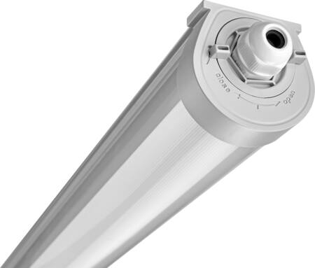 Vandtæt, rørformet armatur med høj IP-klassificering (IP67/IP69K). Ammoniumresistent og velegnet til udendørs og landbrugsmiljøer.