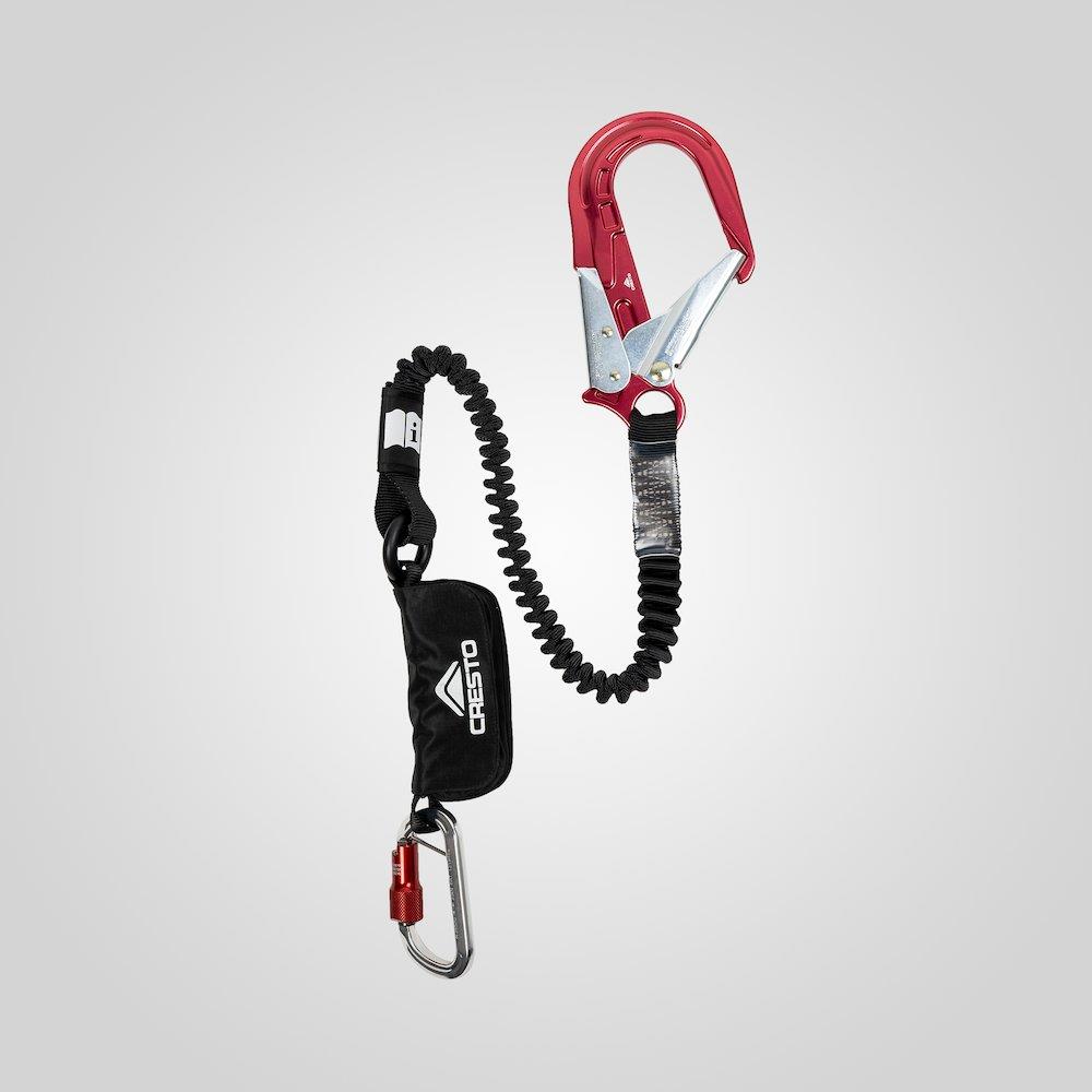Fleksibel falddæmperline med elastik, der kan strækkes til 1,8 meter. Ekstern falddæmper med udskiftelig velcrobeskyttelse. Max brugervægt: 140 kg.