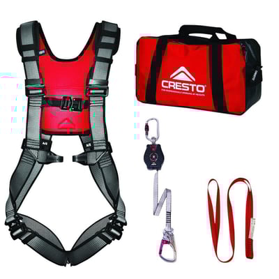 Komplet faldsikringssæt fra Worker til arbejde i lift eller på stillads. Polstret faldsikringssele med hurtigspænde og 2 meter faldsikringsblok.