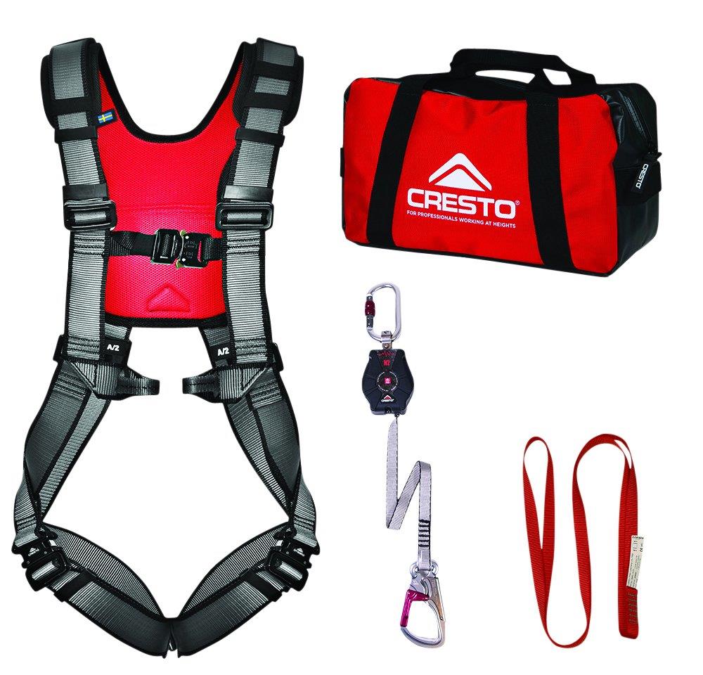 Faldsikringssættet er godkendt til en maksimal belastning på 140 kg og har en levetid på 10 år ved brug, plus 2 år på lager.