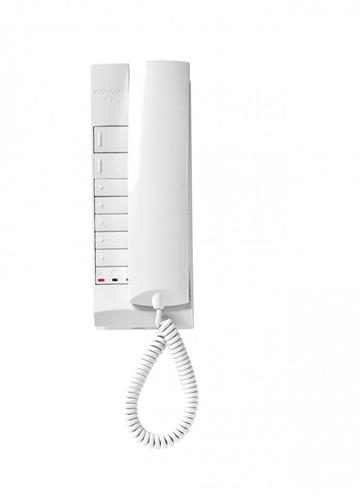 Audio hustelefon til DUO System med 1 døråbningsknap og 6 programmerbare knapper. 3 LED lys indikerer status.