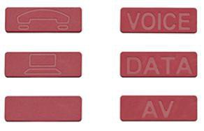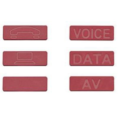 Udskiftelige farveikoner til Atlas-X1-stik. Pakken indeholder 72 ikoner: 24 VOICE, 24 DATA og 24 AV. Nem applikation på fronten af Atlas-X1 stikket.