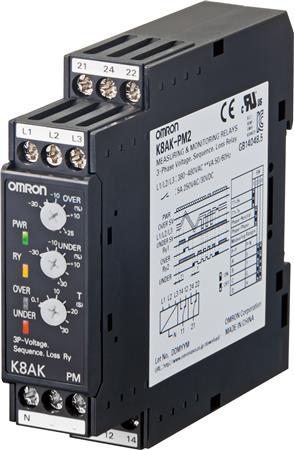 Relæet overvåger automatisk over- og underspænding, fasesekvens og tab i både 3-leder og 4-leder systemer. Det opererer med en spænding på 220 til 480V AC.