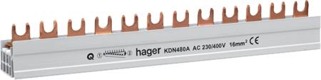 Hager faseskinne gaffel til sikker og effektiv 4-polet sammenkobling af overspændingsafleder. 12M, 16 mm2.