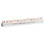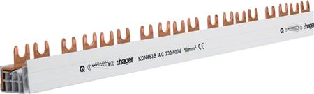 Hager faseskinne til bundtilslutning af automatsikringer og fejlstrømsafbrydere. Med 4 poler, 56M og 10 mm² tværsnit.