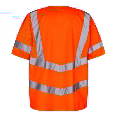 FE Engel advarselsvest i orange, certificeret EN 20471 kl.3, sikrer høj synlighed. Fremstillet af 100 % polyester i unisex design.