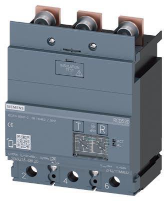 Fejlstrømsmodul RCD520 Basic, RCD type A, monteret på belastningsside med nominel fejlstrøm 0.03...5A. Tilbehør for: 3VA1.
