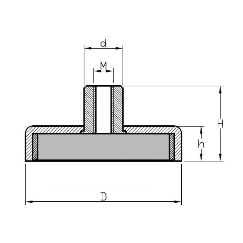 - Pottemagnet med bøsning og indvendigt gevind for alsidige gribe- og holdefunktioner