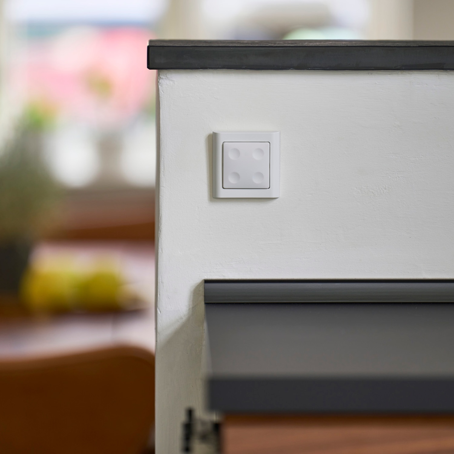 Ideel til trådløs styring af lys og andre smarte funktioner. Med 12 (4x3) valgfri funktioner kan du nemt indstille lysscener, slukke alt lys og meget mere.