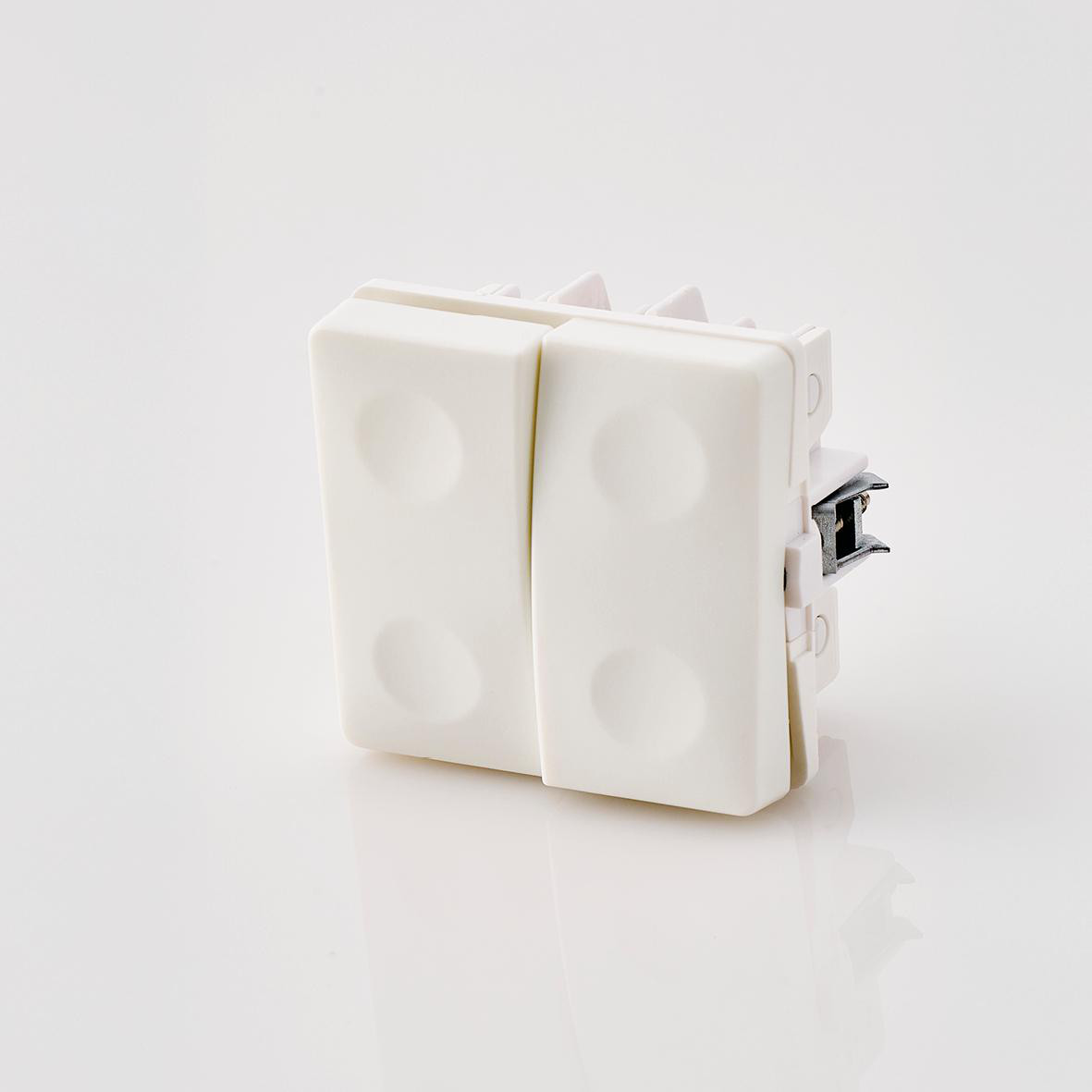 Afbryderen kan belastes med op til 16 A og er udstyret med skrueløse klemmer, der kan håndtere 2 stk. 1,5 mm² eller 2,5 mm² ledninger. Montage er hurtig og sikker takket være de stærke klostykker i siderne og Torx 10 skruer.