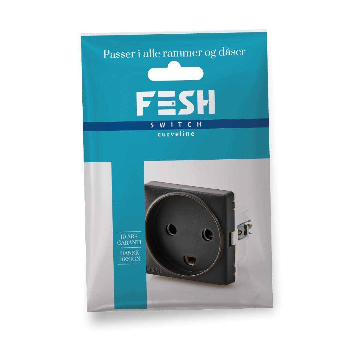 Dette stikudtag fra danske Foss Europe er en del af FESH SWITCH Curveline serien og er designet til både bolig og erhverv. Det passer i alle kendte rammer fra andre producenter og kan monteres i de gængse dåser og underlag, der findes på det danske marked.
