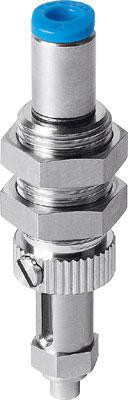 Festo ESH-HCL-1-QS holder til vakuumsuger med øget højdekompensator og vakuumtilslutning i toppen. Kompensatoren er sikret med to sekskantmøtrikker.
