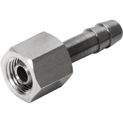 Slangenippel C-3/8-P-9 fra Festo med en nominel størrelse på 6,5 mm. Den er designet til brug med trykluft i overensstemmelse med ISO8573-1:2010.