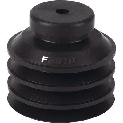 Slidstærk og let udskiftelig Festo sugekop ESV-40-CN med højdekompensator på 12,8 mm. Minimum emneradius: 100 mm, sugekop diameter: 40 mm.