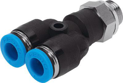 Festo QSY-G1/4-8 push-in Y-fitting med 360° justering, udvendigt gevind og ekstern sekskant.