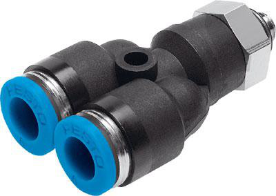 Denne push-in Y-fitting QSY-M5-4 fra Festo er designet med en 360° justerbar funktion og et udvendigt gevind med ekstern sekskant. Den er ideel til brug i forskellige pneumatiske systemer.