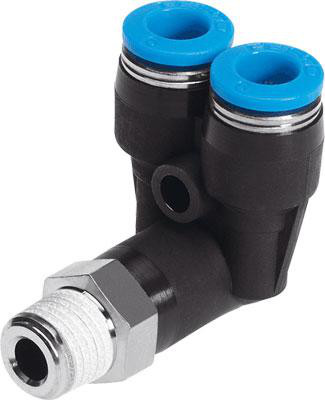 Festo QSYL-1/4-8 push-in Y-forskruning med 360° justering, udvendigt gevind og sekskant. Standard størrelse med 4,3 mm nominel størrelse.