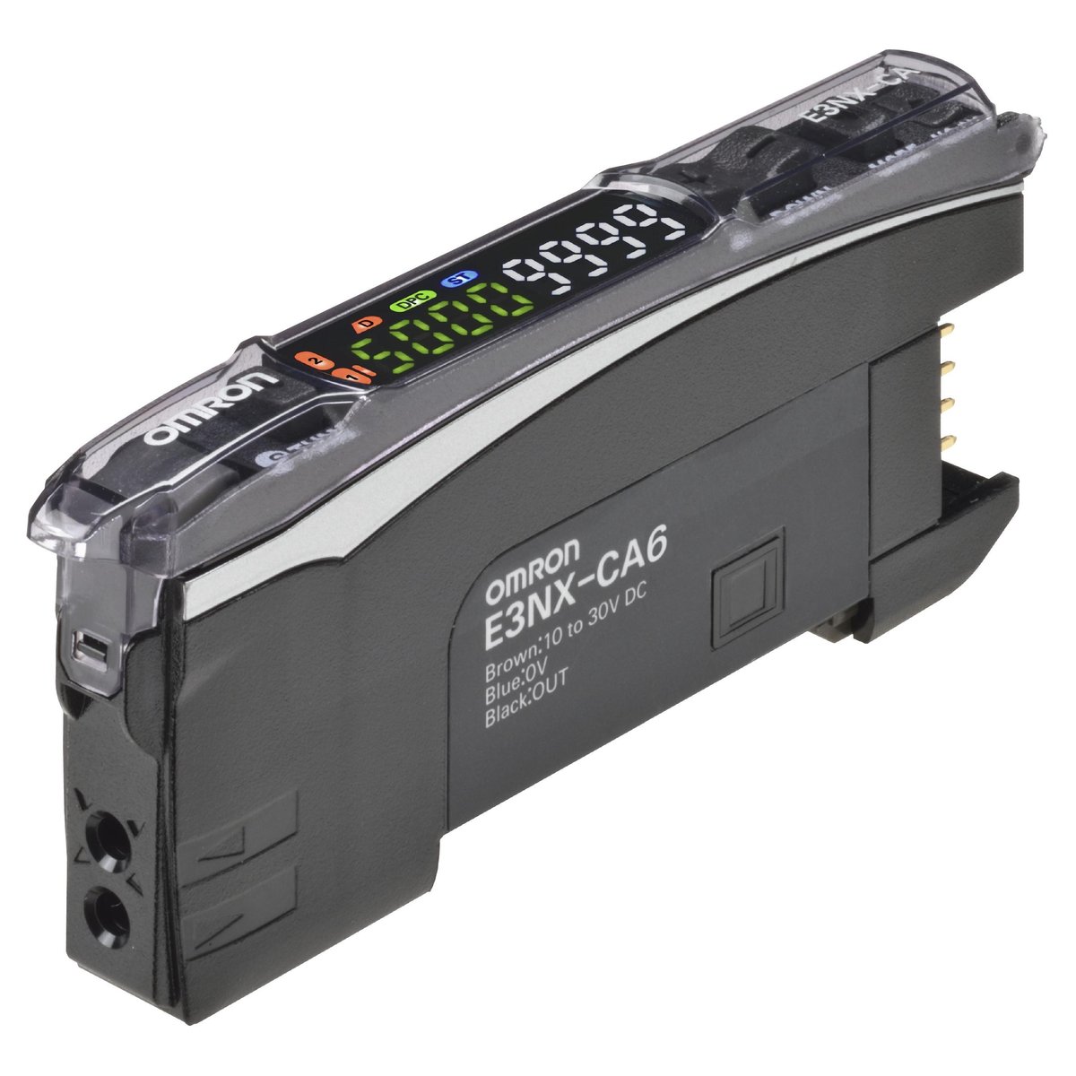 Fiberforstærker, standardmodel, farvemarkeringsdetektion hvid LED, PNP-udgang, smart tuning, stik.