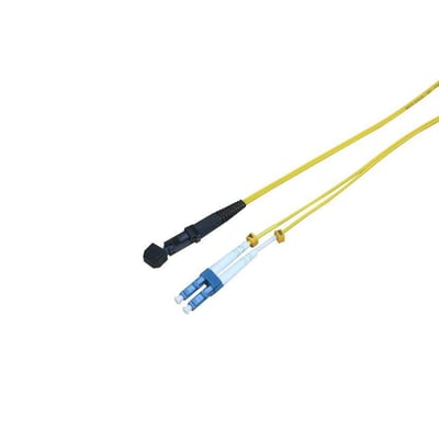 Fiber patchkabel med LC/UPC til MTRJ/UPC stik. OS2 Single Mode duplex, 0.5 meter, LSZH, gul. Ideel til pålidelige netværksforbindelser.