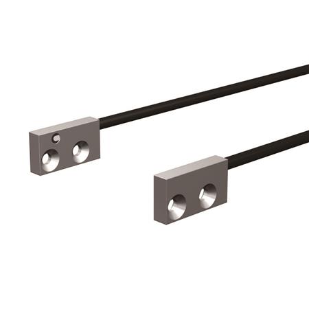 Fiberoptisk sensorhoved med gennemgående bjælke, firkantet, fladt billede og R1 fleksibel fiber. Inkl. 2 meter kabel.