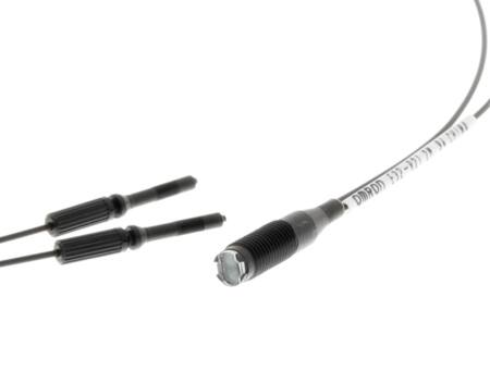 Fiberoptisk sensorhoved, retroreflekterende, M6 cylindrisk aksial. Reflektor E39-R3 medfølger. R25 fiber, 2 meter kabel.