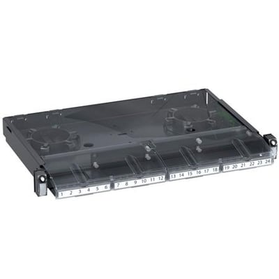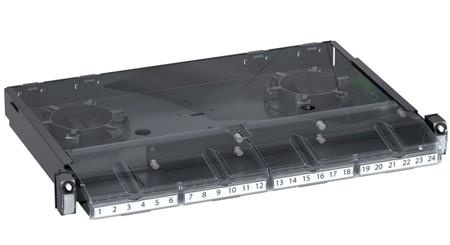 Med Quick Fix-fastgørelsen kan panelet nemt frigøres og trækkes ud uden brug af værktøj. Panelet understøtter montering af op til 4 adaptorplader, hvor du kan vælge dine foretrukne fiberadaptorer baseret på den ønskede fiberkonnektor. Medfølgende opgvejlingsspoler sikrer korrekt bøjningsradius og en struktureret fiberinstallation.
