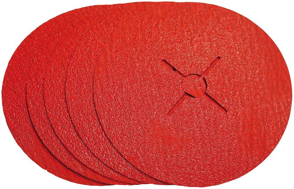 Fiberrondel med selvskærende keramisk korn (CER) og slibeaktiverede tilsætningsstoffer for kølig slibning og øget ydeevne. Lang levetid og reduceret misfarvning.