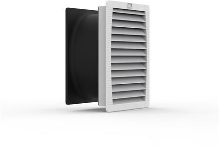 Filterblæser med EMC-egenskaber og lang levetid. EMC-skærm kombineret med kontaktstrimler i rustfrit stål sikrer god kontakt med skabsoverfladen.