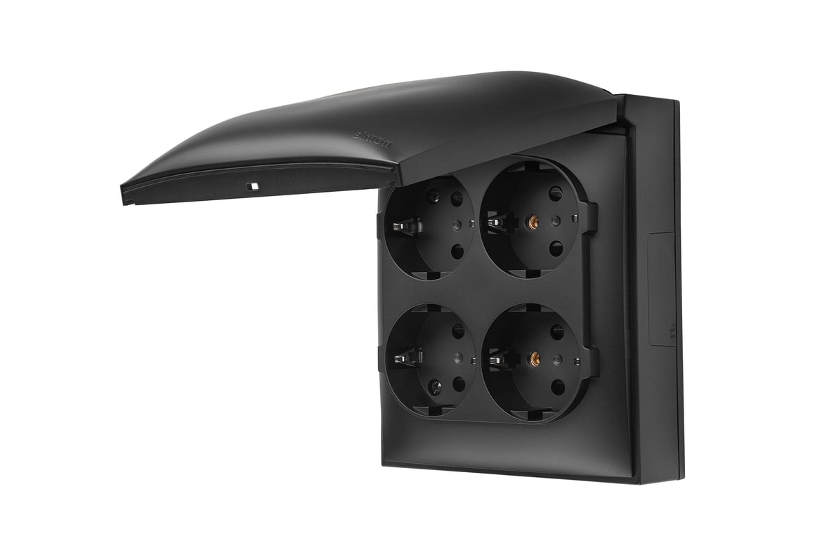 Simon X4 firedobbelt Schuko-stikkontakt, sort