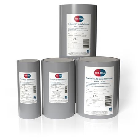 Dette installationsrør består af to halve skaller, der er delt på langs og indeholder et ekspanderende indlæg. Til hvert rør medfølger to endestykker i blødt skumplast, som monteres i røret efter installation og fuges med FireFree 101 Brandfuge.