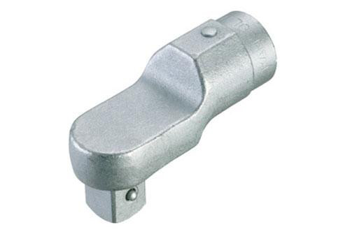 Firkanthoved til momentnøgler. Til at løse vanskelige montageproblemer, let at udskifte. Med stiftsikring. Smedet krom-vanadium stål, mat forkromet.