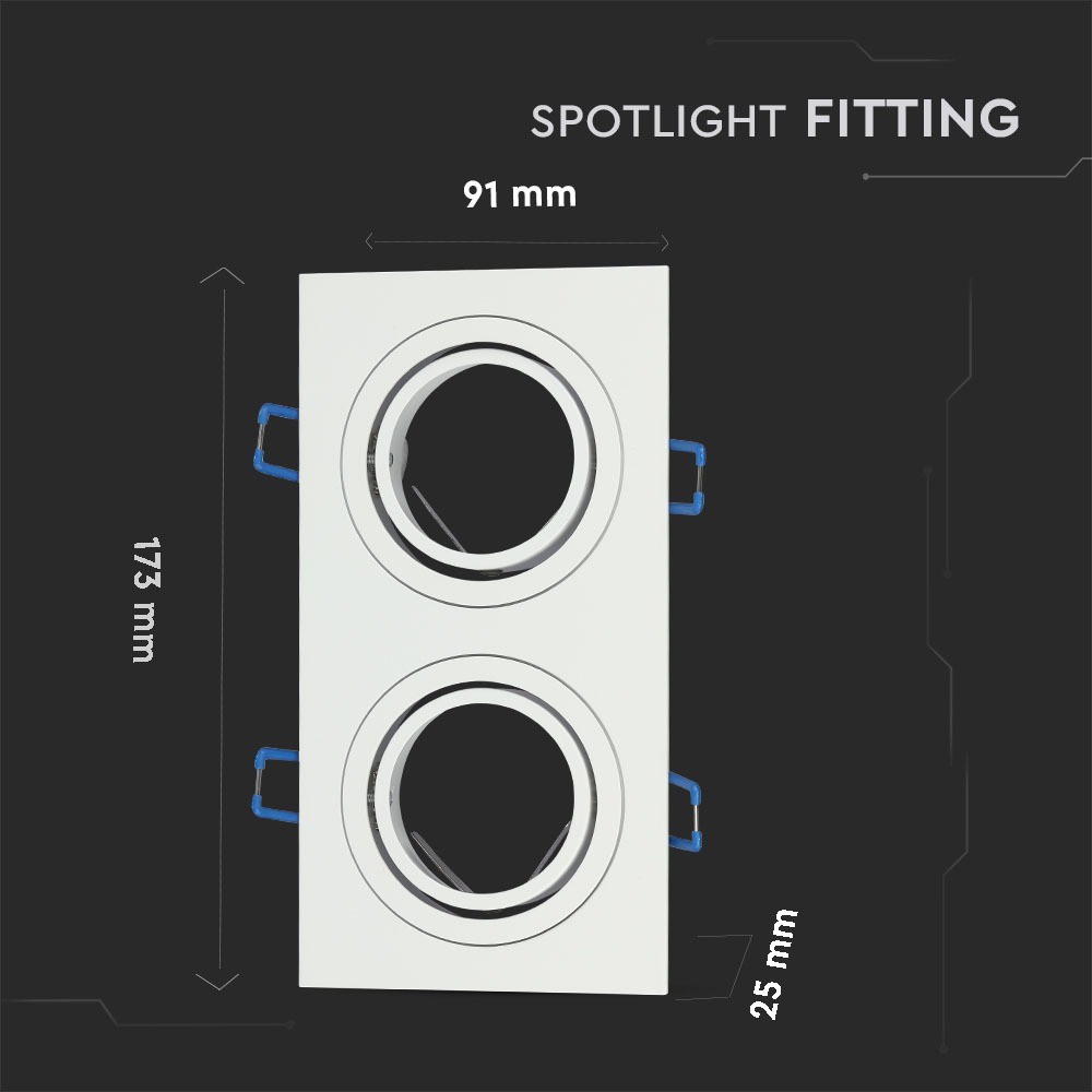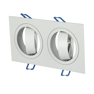Dobbelt GU10 indbygningsspot i aluminium. IP20-klassificeret og designet til nem installation med præcise hulmål. Leveres uden lyskilde.