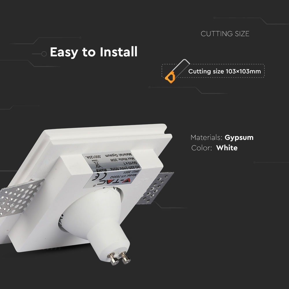 Firkantet hvid GU10 gipslampe til loftmontering