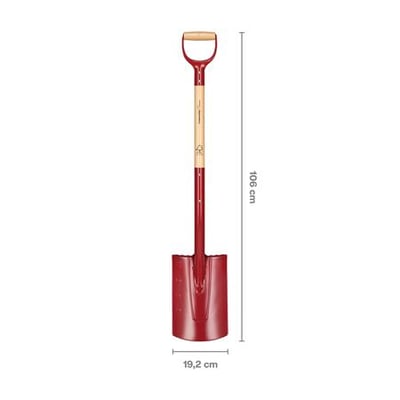 Det autentiske træskaft er FSC®-certificeret (FSC C108780), hvilket garanterer en ansvarlig produktion. Det behagelige D-formede håndtag er designet til at passe komfortabelt i alle hænder, uanset om du bruger handsker eller ej. Spaden har en samlet længde på 106 cm.