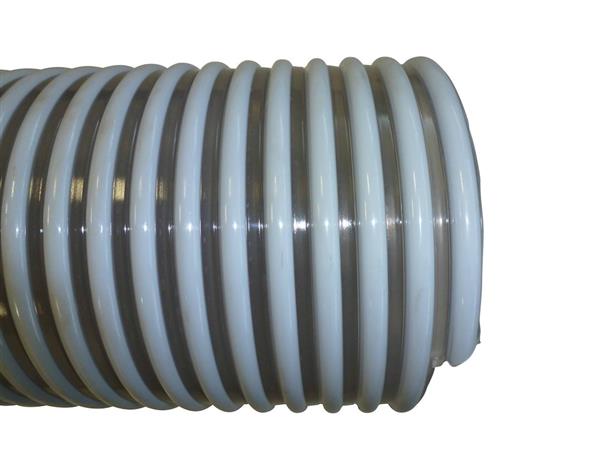 Fleksibel PVC-slange med spiral til suge- og trykformål ved transport af fisk. Godkendt iht. EU 10/2011 Cat. A, B, C.