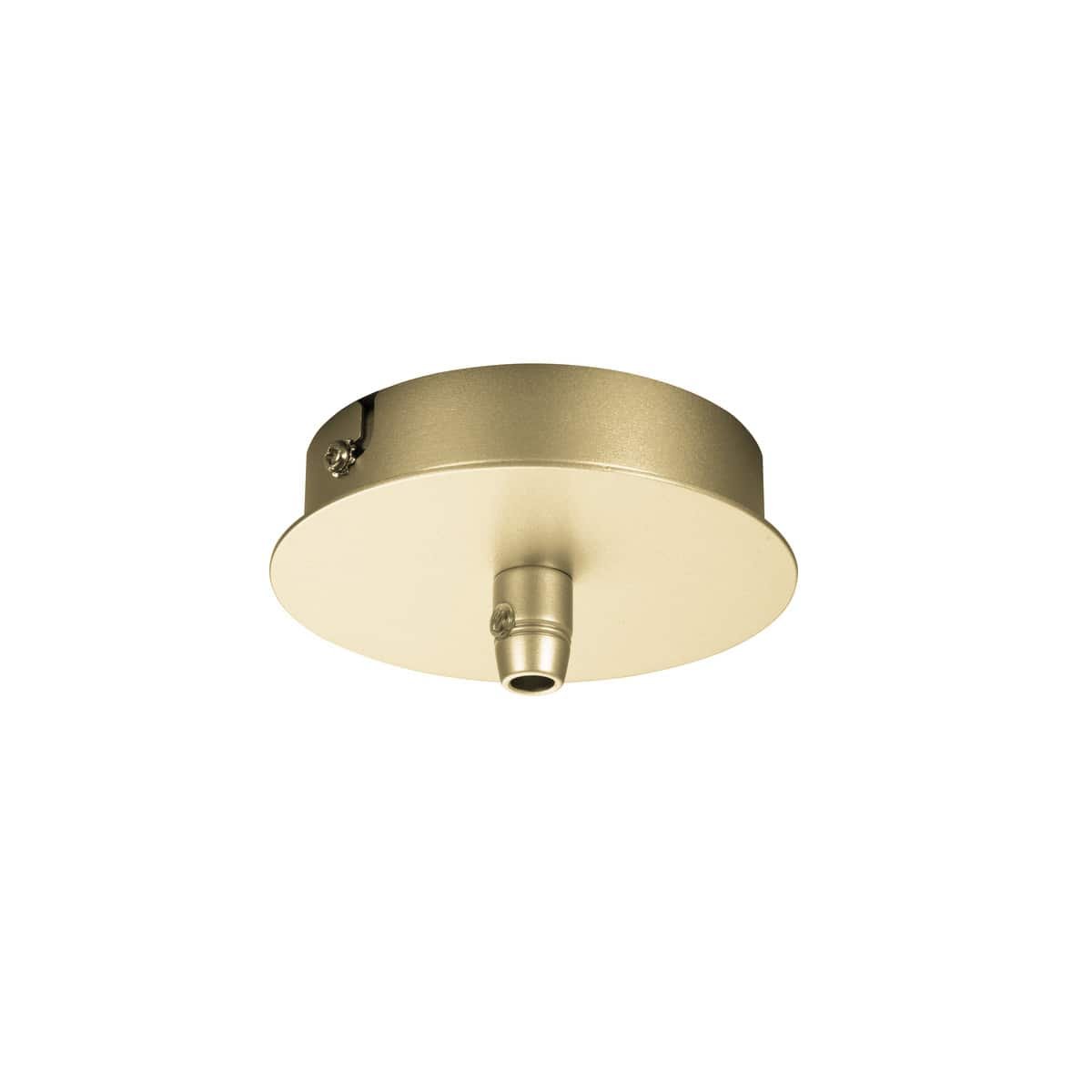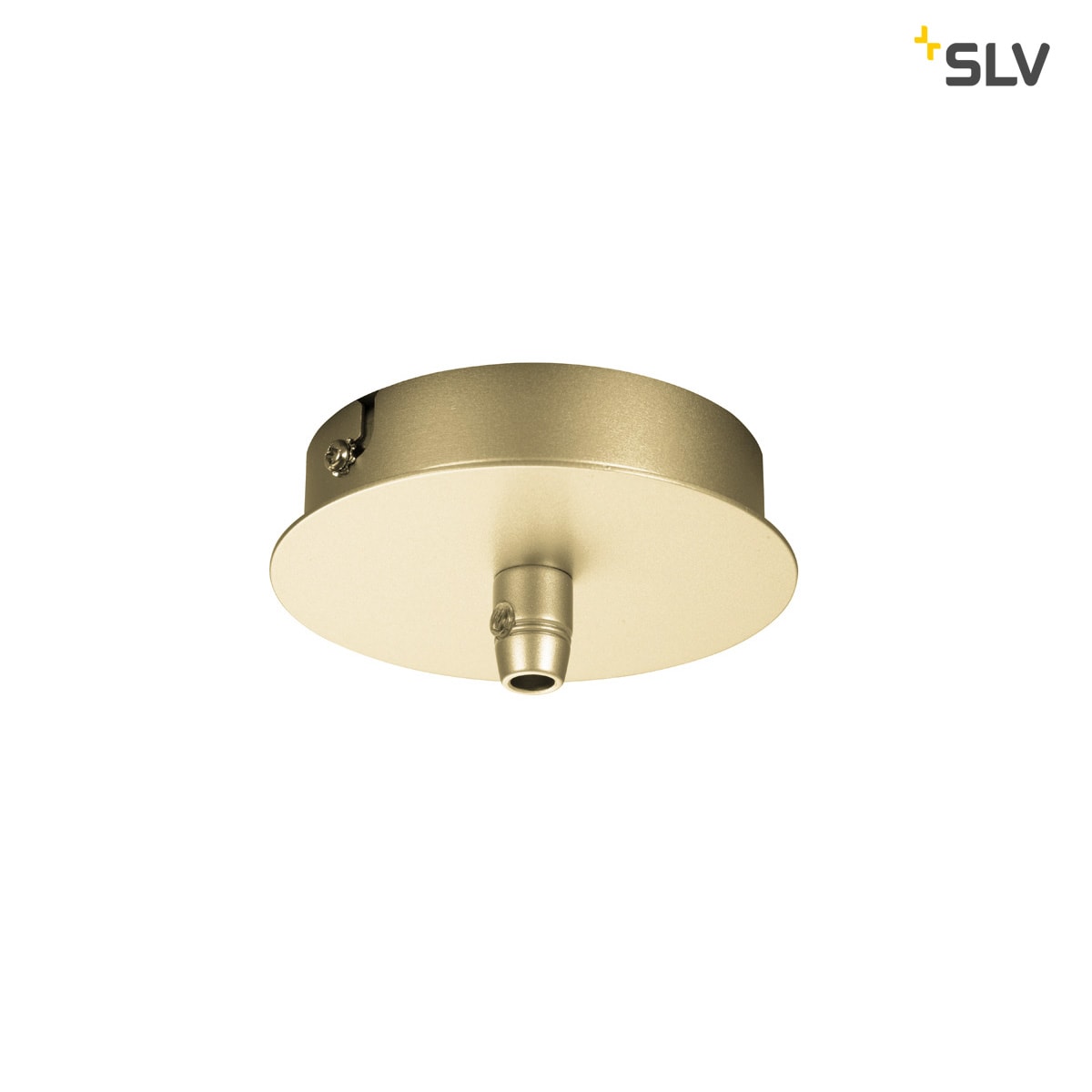 Rund FITU loftroset fra SLV, i guld, med 1 udtag. Kan kombineres med FITU E27 pendler og inkluderer trækaflastning. Perfekt til indendørs brug.