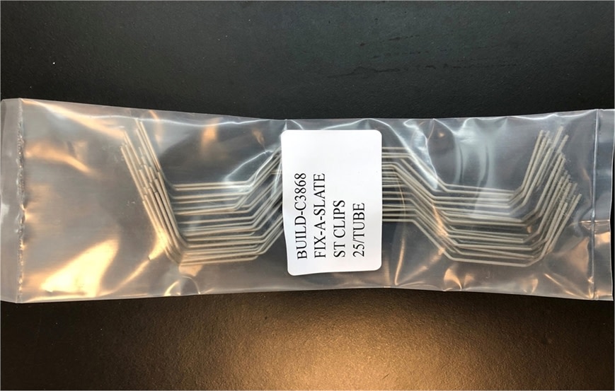 Fix-A-Slate clips er en hurtig og nem løsning til reparation af naturskifertage. Disse clips er designet til at erstatte beskadigede eller manglende skifersten uden behov for omfattende tagarbejde.