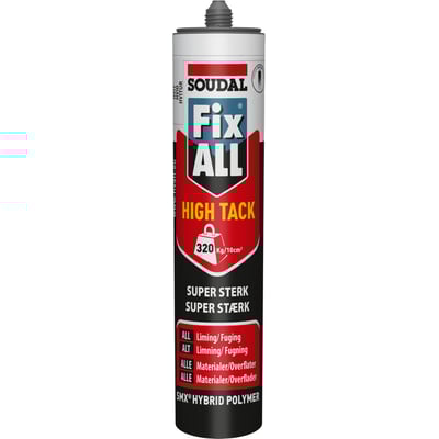 Limens formulering sikrer fremragende vedhæftning på stort set alle materialer og overflader, hvilket gør den til en yderst fleksibel løsning for mange forskellige projekter. Efter hærdning opnår limen en imponerende slutstyrke på 320 tons/m2, hvilket garanterer en holdbar og sikker fastgørelse. Desuden kan Fix ALL High Tack overmales, så den nemt kan integreres i den eksisterende farvesammensætning.