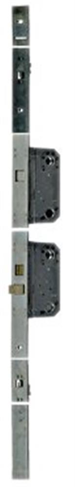 Fix kantstanglås 2250 med 2 låsekasser, sidebetegnelse venstre. Aflåselig med 360° drejning, messingfalle til dørgreb og rigel til cylinderaflåsning.