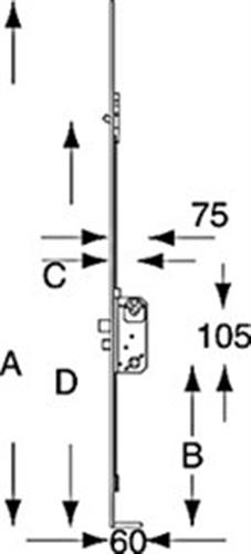 Aflåselig lås til øverste halvdør. Med 1 sidekolve. Højre sidebetegnelse. Blåkromateret.