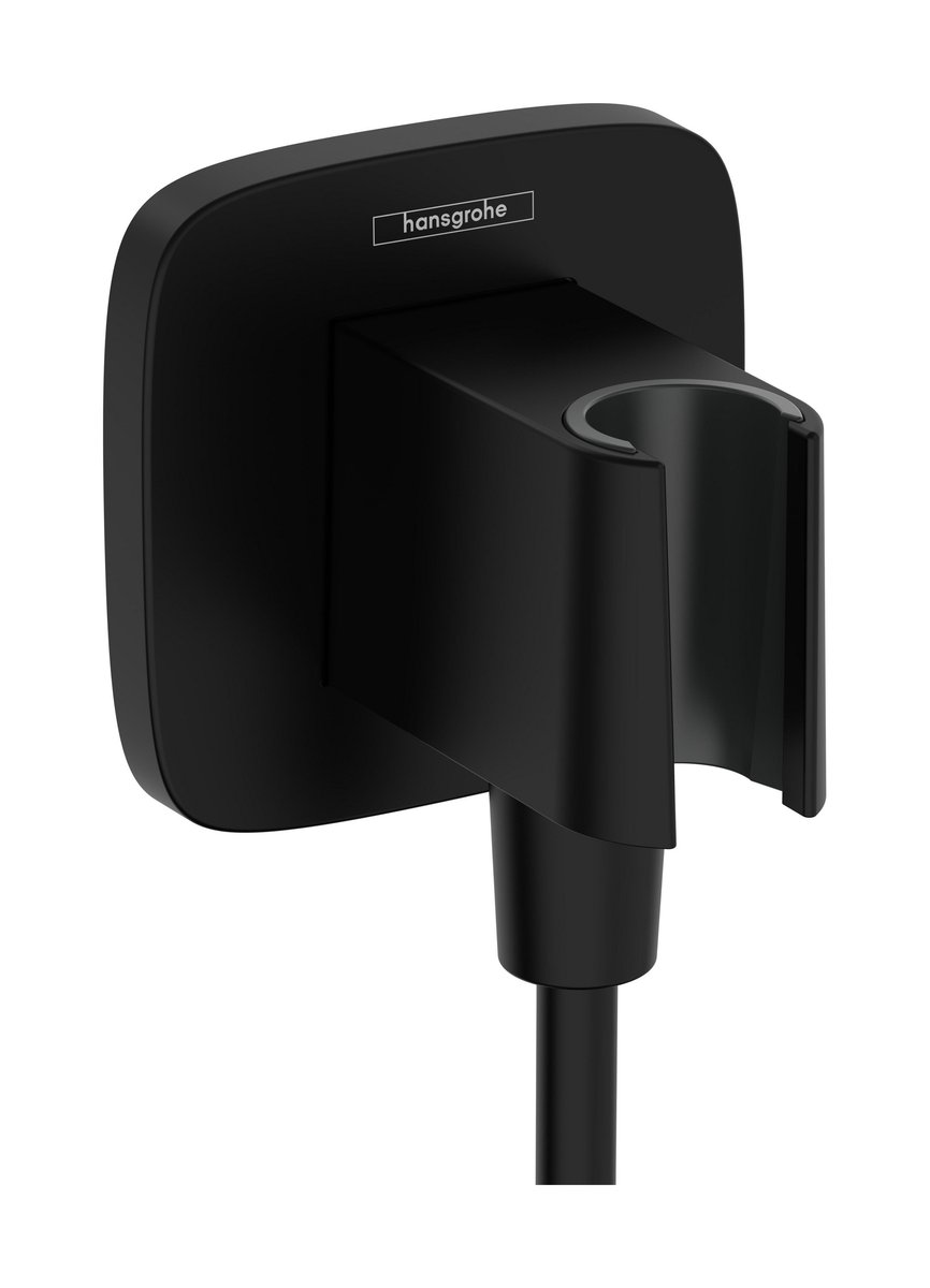 Hansgrohe FixFit Q vægtilslutning er designet til at give en elegant og funktionel løsning til din bruser. Dette slangeudtag er udført i en moderne mat sort finish og inkluderer en praktisk bruserholder, der sikrer en fast holdeposition for din håndbruser.