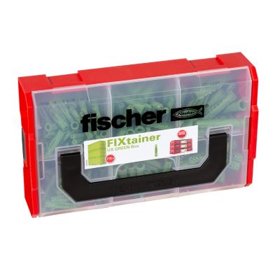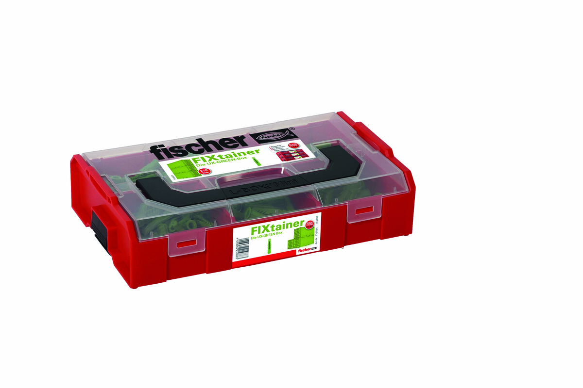 Fischer FixTainer er en praktisk og alsidig sortimentskasse, der indeholder universaldybler til en bred vifte af befæstelsesopgaver i forskellige byggematerialer. Denne specifikke FixTainer, UX Green, er en del af Fischers GreenLine-serie og indeholder dybler, der er fremstillet af mindst 50% bæredygtige råmaterialer, hvilket bidrager til en mere miljøvenlig løsning.