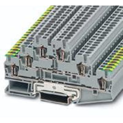 Fjederkraft-jordklemme med fjederkrafttilslutning. Til tværsnit fra 0,08-4 mm² (AWG 28-12). Bredde 5,2 mm. Farve: grå.