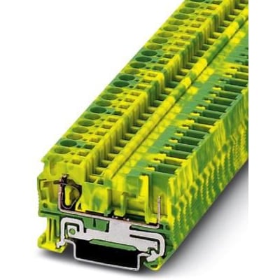 Fjederkraft-jordklemme til 0,08-6 mm² ledere. Nem tilslutning med fjederkraft. Kun 6,2 mm bred. Grøn/gul farve.