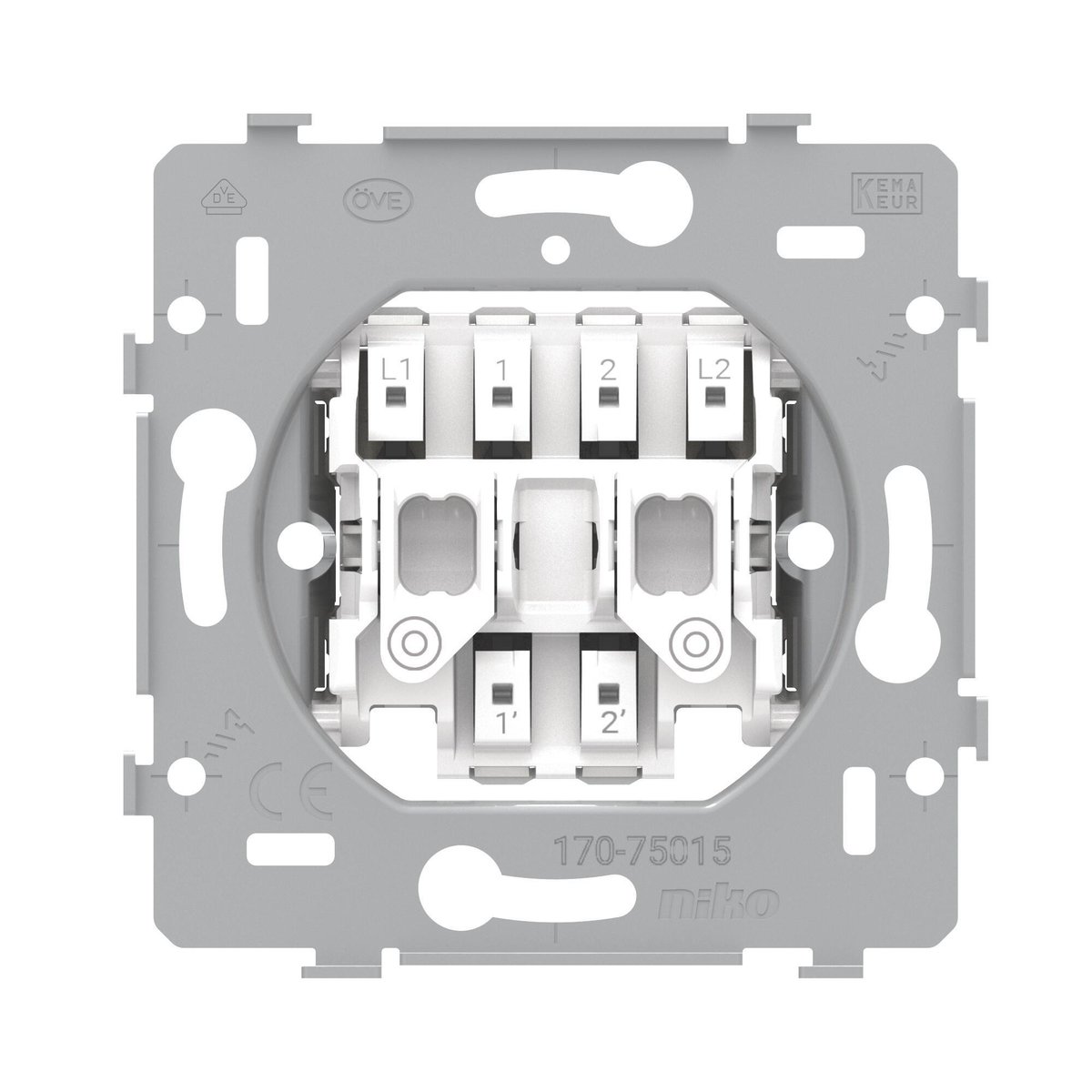 Dobbelt fjedertryk med N.O. eller N.C. kontaktsæt, 10A/250Vac. Nem montering i eurodåse med skruer. Tangent (XXX-61505 eller XXX-61507) bestilles separat.