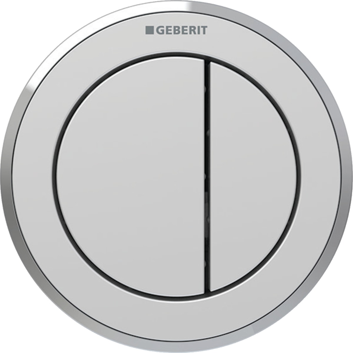 Geberit Type 10 fjernbetjent skyllestyring til dobbeltskyl. Pneumatisk betjening med mat krom finish og easy-to-clean overflade. Kan kombineres med flere Geberit cisterner.