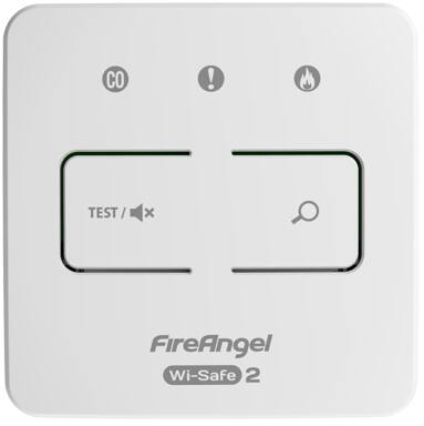 Wi-Safe2 trådløs kontrolpanel til Fireangel alarmer. Fjernbetjeningen har et forseglet 10 års alkalisk batteri.